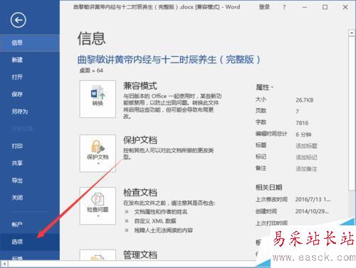 3、在打開的“文件”命令窗口中,點擊“選項”命令選項。如圖所示;