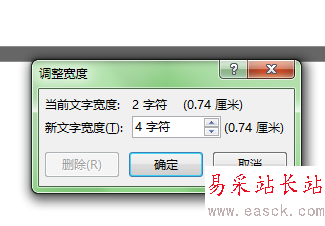 2、接下來的操作和上面的就一樣一樣的了,設(shè)置要修改的字符寬度,同樣也能達(dá)到文字快速對(duì)齊的效果。