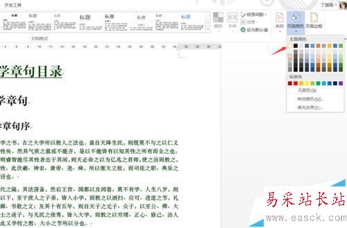 5、如圖,選中“設計”選項卡——“頁面顏色”