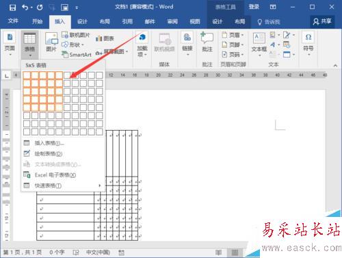 7、另外,在表格功能區,點擊表格選項,在選項框中,拖動鼠標選擇表格數量。也可快速插入表格。如圖所示;