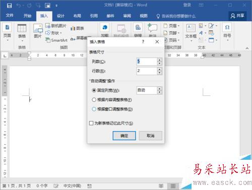 4、點擊“插入表格”命令選項后,這個時候會打開“插入表格”對話框,如圖所示;