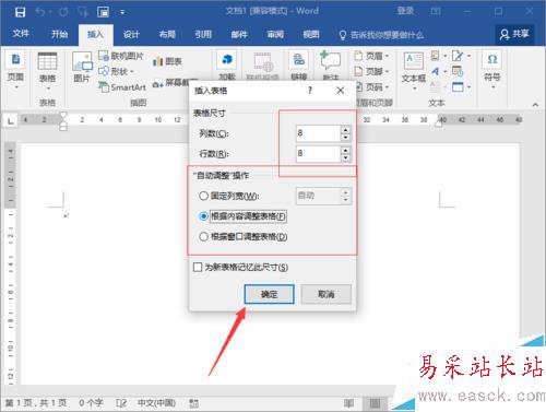 5、在插入表格對話框中,根據我們自身文檔的編輯的需要,設置要的行與列,以及其他參數。最后點擊“確定”按鈕。如圖所示;