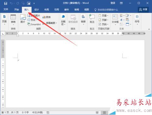 2、在打開的Word文檔窗口中,打開“插入”菜單選項卡。如圖所示;