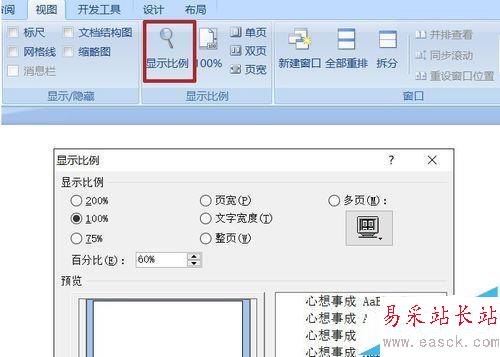 3、視圖——顯示比例,將窗口顯示改為60%,便于看到整個(gè)表格。