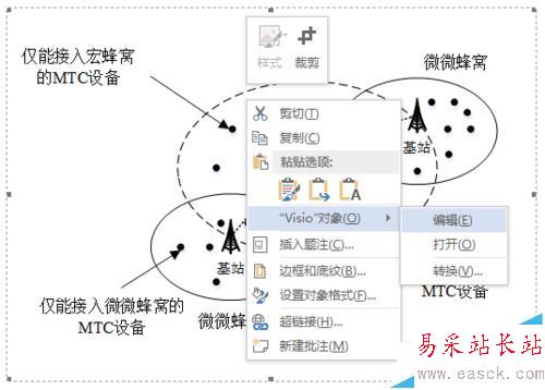 二種方式是在圖上右鍵點擊圖形,會彈出選項框,選擇“visio對象”中的編輯就可以達到與第二步相同效果。