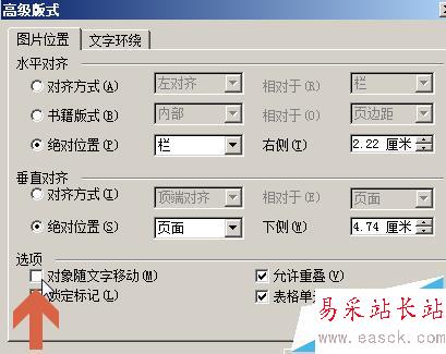 6、用鼠標點擊勾選高級中的“對象隨文字移動”選項。