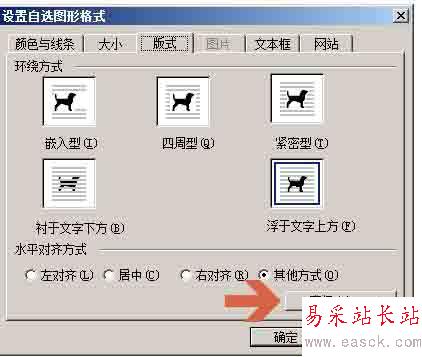 4、點擊“設置自選圖形格式”中的“版式”。