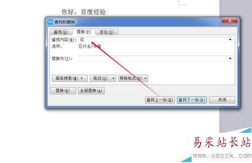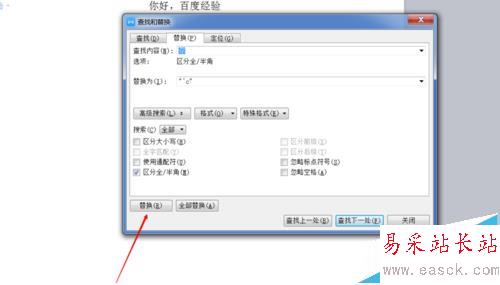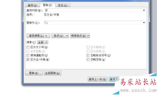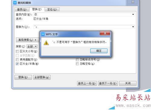 4、接著在替換為框中輸入“^c”(注意一定是在半角的狀態(tài)下,c要小寫)。
