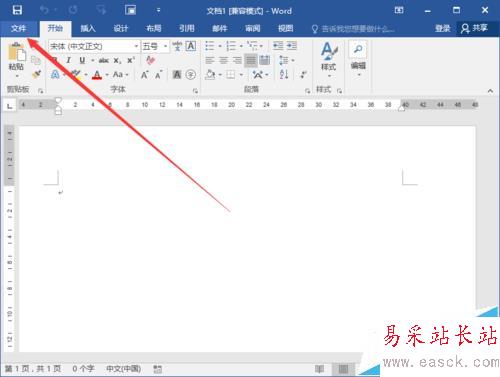 2、在打開的Word文檔窗口中,點擊左上角的“文件”命令選項。如圖所示;