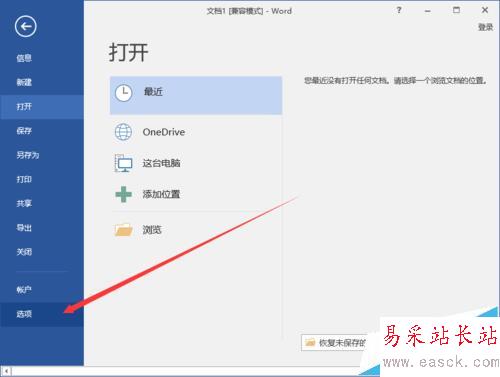 3、在打開的“文件”命令窗口中,點擊“選項”命令選項。如圖所示;