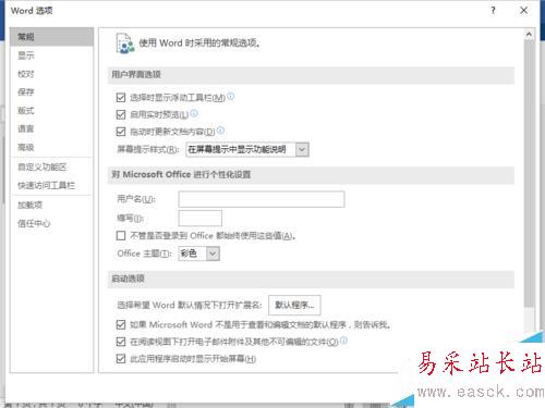 4、點擊“選項”命令選項后,這個時候會打開“Word選項”對話窗口。如圖所示;