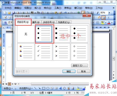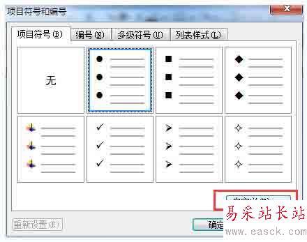 4、在新出來的一個界面選中“項目符號”選項卡。然后任意選中一個編號。