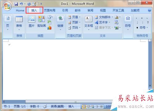 2、點(diǎn)擊word2007軟件的“插入”菜單;