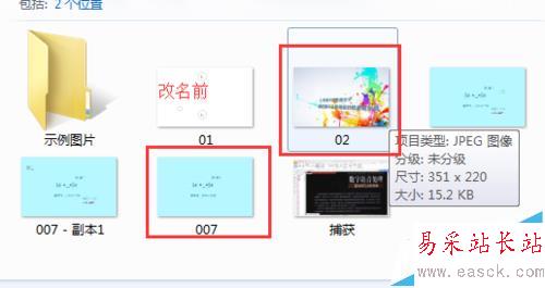 1、找到自己圖圖片文件夾,將自己的目標(biāo)圖片的名稱改動一下,再將另一個相同格式的圖片給成原來圖片的名稱。如下圖所示。