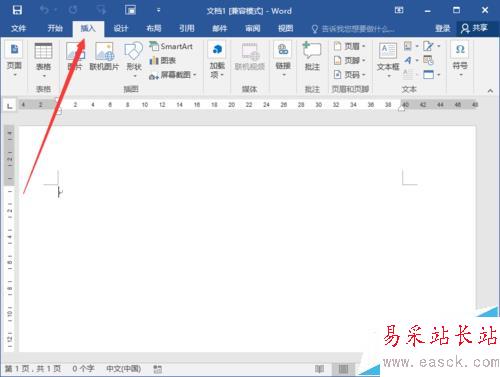 2、在打開的Word文檔窗口中,打開“插入”菜單選項卡。如圖所示;