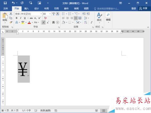 7、回到Word文檔中,在編輯區(qū)域即可看到插入后的人民幣符號。如圖所示;