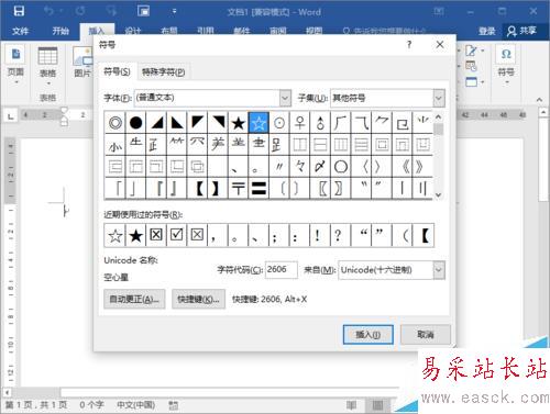 4、點擊“其他符號”命令選項后,這個時候會打開“符號”對話框。如圖所示;
