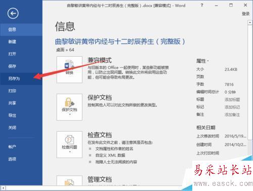 3、在文件選項框中,點擊“另存為”命令選項。如圖所示;