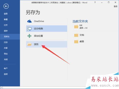 4、在另存為選項的右側窗格中,點擊“瀏覽”選項按鈕。如圖所示;