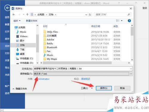 6、在另存為對話框中,在保存類型中選擇“純文本(*.txt)”選項,而后點擊“保存”按鈕。如圖所示;