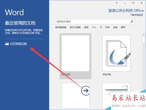 1、鼠標左鍵雙擊計算機桌面Word2016程序圖標,將其打開運行。并點擊“打開其他文檔”選項。打開需要編輯的Word文檔。如圖所示;