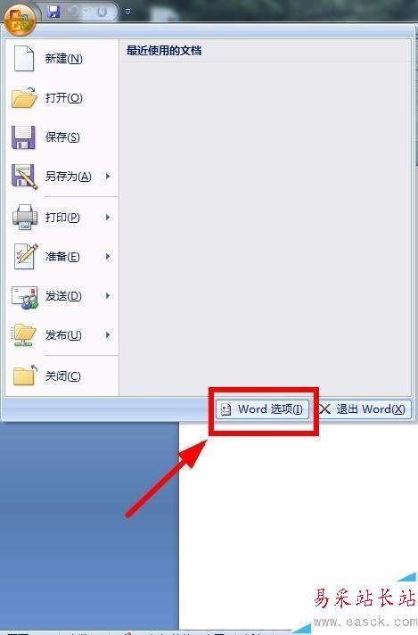 2、打開word07,點擊office圖標,找到word選項,點擊加載項,轉到,