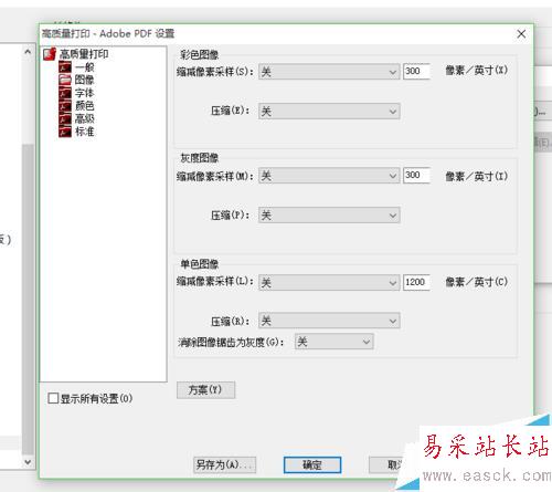 5、在彈出的對話框中選擇左側(cè)的“圖像”,將所有的壓縮選項都設(shè)置為“關(guān)”。