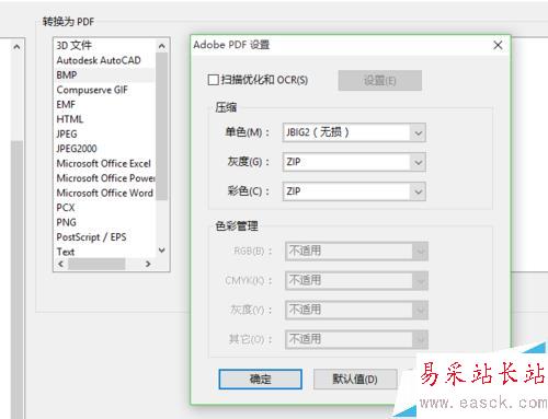 2、選擇“BMP”,單擊“編輯設(shè)置”,便會彈出如圖所示對話框。將“灰度”與“彩色”均改為ZIP。(經(jīng)過測試,“JPEG2000無損”畫質(zhì)不如ZIP)