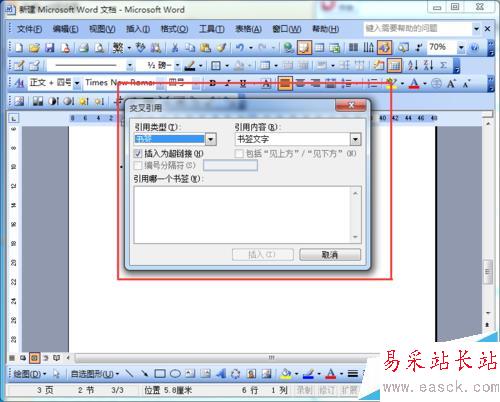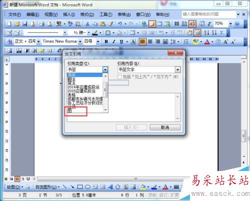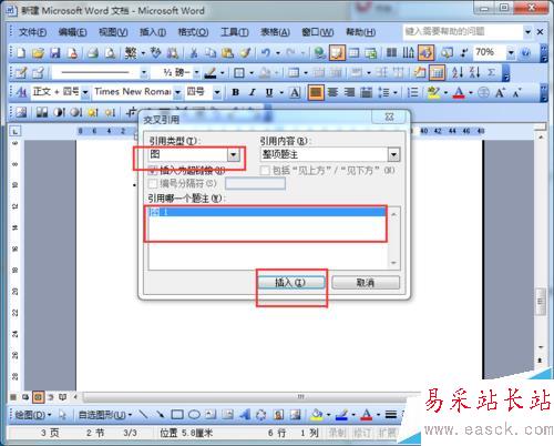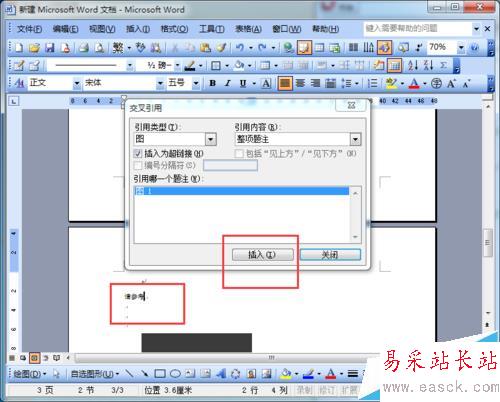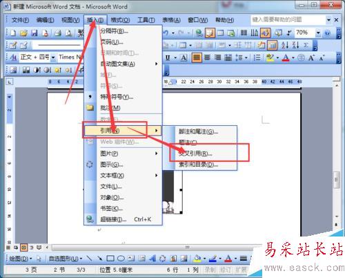 3、然后在新出來的文檔中選中“引用”,“交叉引用”