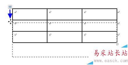 5、當鼠標指針變成上述符號后,按住鼠標左鍵不放,同時移動鼠標,這時會出現虛線表示表格移動的位置。
