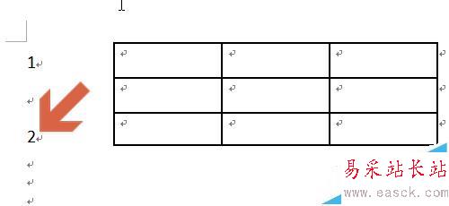 2、按回車鍵后,文字移動,但表格因為在頂端不隨之移動。