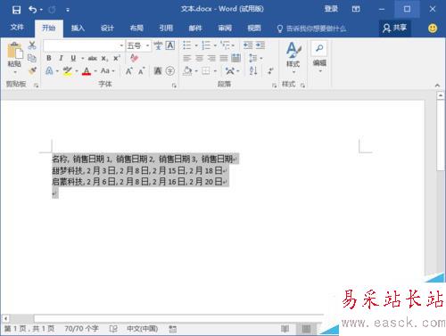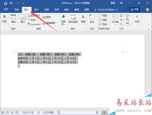 Word2016怎么將表格轉為文本?