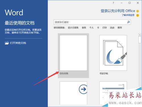 1、鼠標左鍵雙擊計算機桌面Word2016程序圖標,將其打開運行。在打開的Word2016程序窗口,點擊“空白文檔”選項,新建一個空白Word文檔。如圖所示;