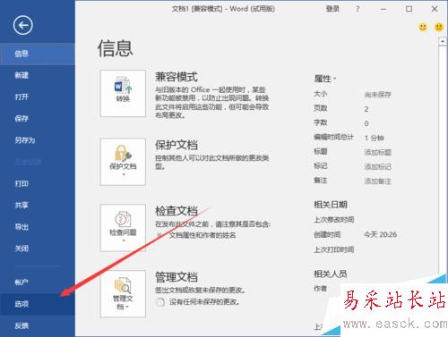 5、在打開文件選項對話窗口中,選擇中左側窗格下方的“選項”命令點擊它。如圖所示;