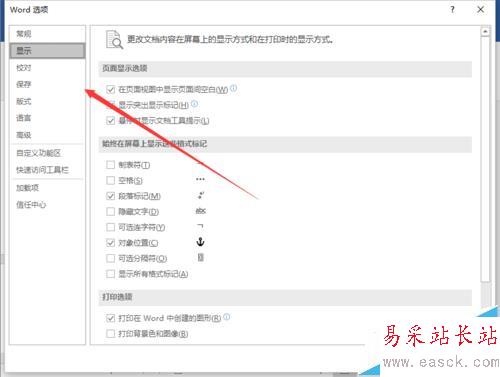 7、在Word選項對話窗口中,將選項卡切換到“顯示”選項卡欄。如圖所示;