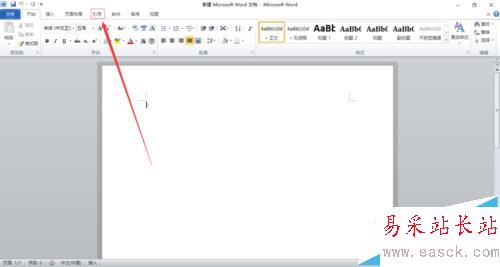 1、首先我們打開一個Word2010文檔(這里以一個空白文檔為例),進入頁面后默認是開始選項卡下的頁面,我們點擊選擇頁面上方“引用”選項卡