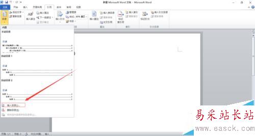 2、在引用選項卡頁面的左側(cè)有“目錄”,點擊一下出現(xiàn)下拉項,點擊選擇“插入目錄”