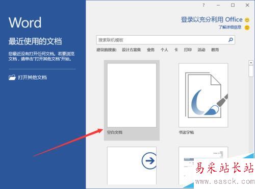 1、在計算機桌面上的Word2016文檔程序圖標雙擊鼠標左鍵,將其打開運行。并點擊“空白文檔”選項,新建一個空白Word文檔。如圖所示;