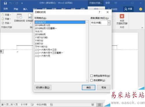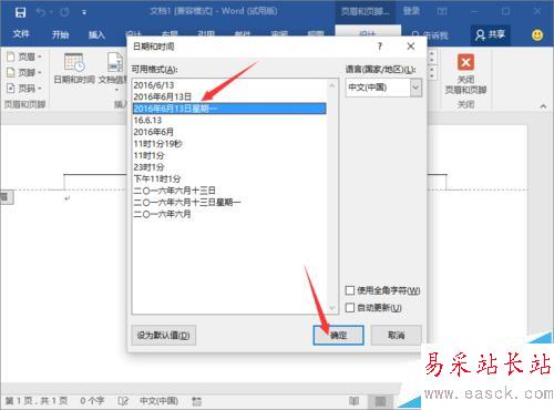 7、在“日期和時間”對話框中,選擇一個日期格式再點擊“確定”按鈕。如圖所示;