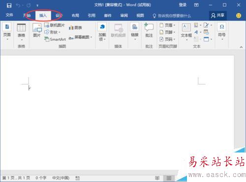 2、在打開的Word文檔窗口中,打開菜單欄的“插入”選項卡。如圖所示;