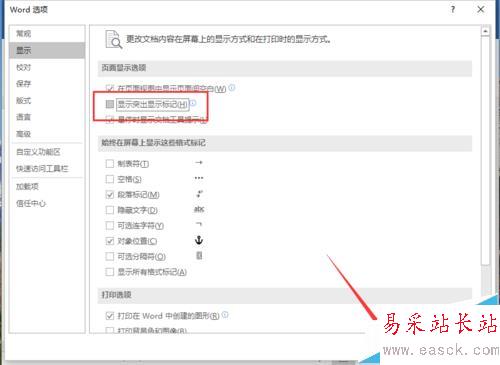 6、在“顯示”選項卡欄的右側窗格中,找到“頁面顯示選項”下的“顯示突出顯示標記”功能選項并將其取消勾選,而后再點擊“確定”按鈕即可。如圖所示;