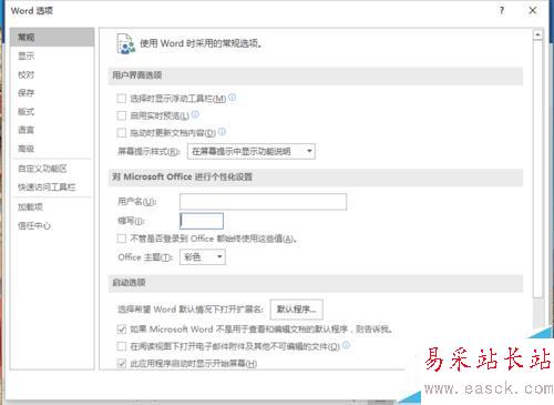 4、點擊“選項”命令選項后,這個時候會打開“Word選項”對話窗口。如圖所示;