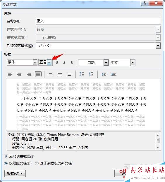 這樣所有的正文字體都會變成五號字體。