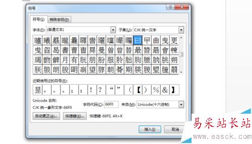 5、我們點擊插入,如下圖。就在word2013里,插入了這個生僻字了。