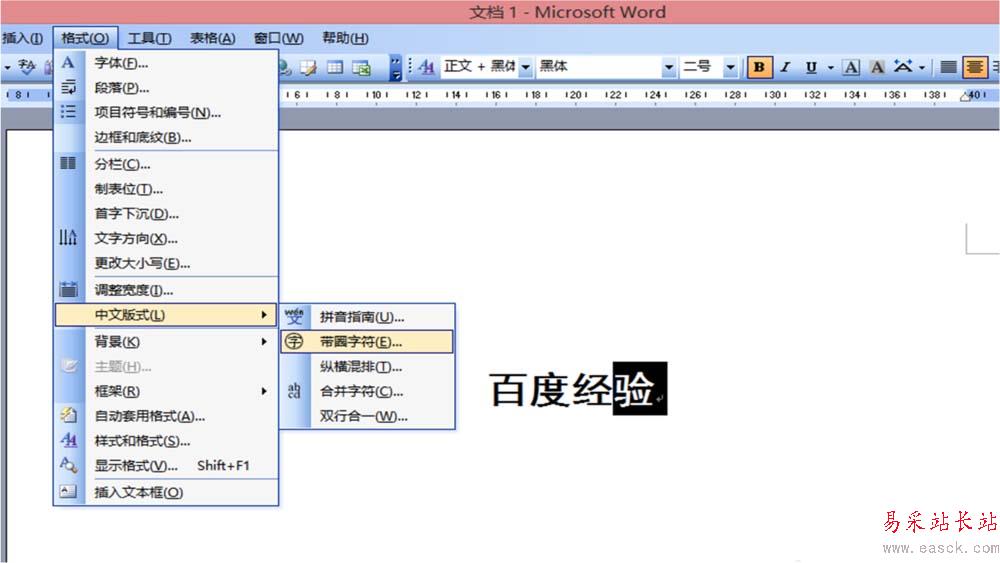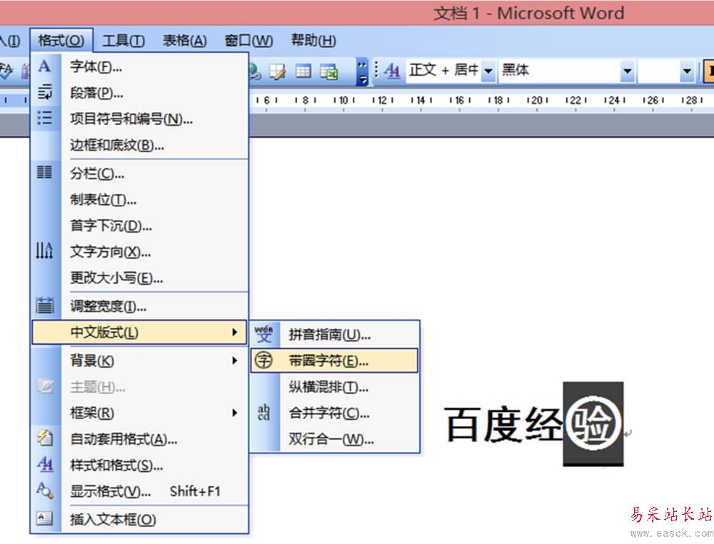 1、選中帶圈的文字,然后點(diǎn)擊格式——中文版式——帶圈字符。