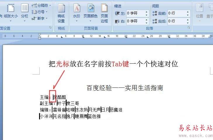 6、把【光標】放在名字前按【Tab鍵】一個個快速對位。