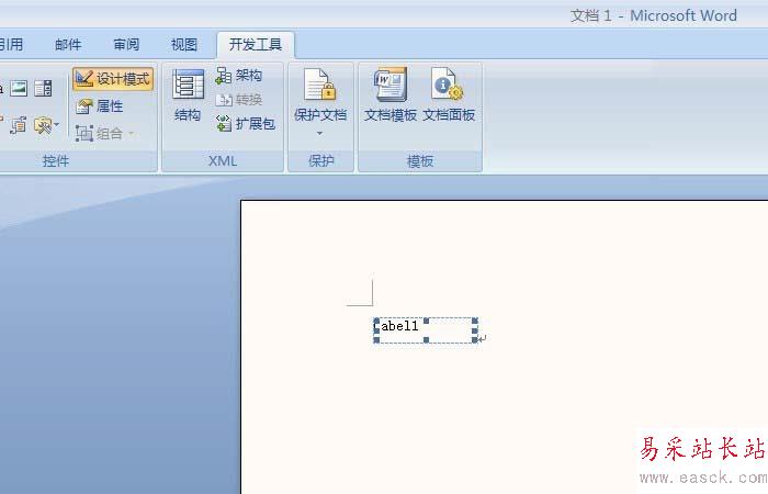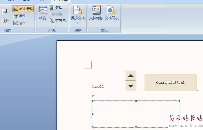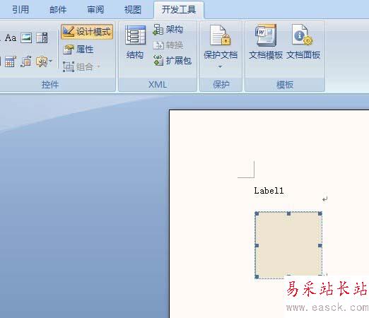 2、鼠標左鍵選擇一個【Label控件】,在word中繪制出該控件,可拖動控件四周節點控制大小,也可移動位置,如下圖所示。