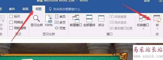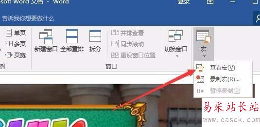 8、關閉剛剛的代碼輸入框,回到Word文檔后,點擊宏下拉菜單,然后選中并點擊“查看宏”菜單項