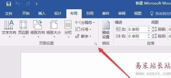 2、接下來點擊工具欄上的箭頭所指的位置,打開Word頁面設置窗口