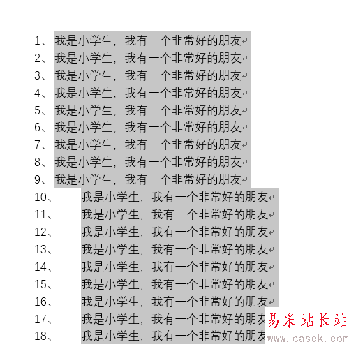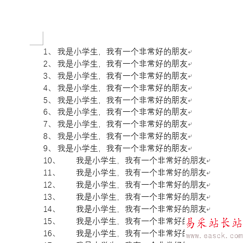 1、編輯內容。新建word,將要編輯的內容放到頁面中,當你編輯序號的時候會發現序號到后面的時候會有空格出現,這就是我們要設置的內容。